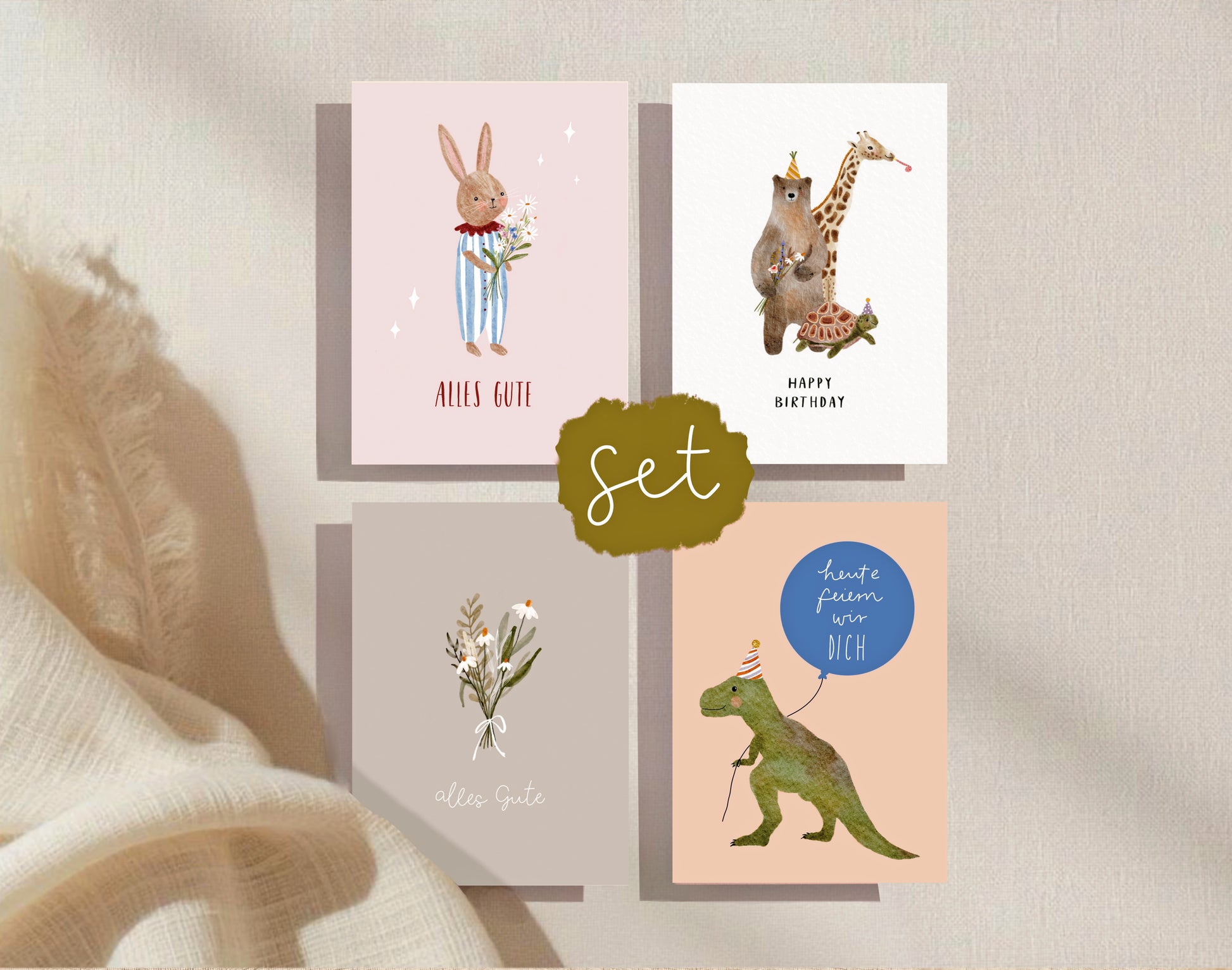 Geburtstagskarten Set / 4er Kartenset