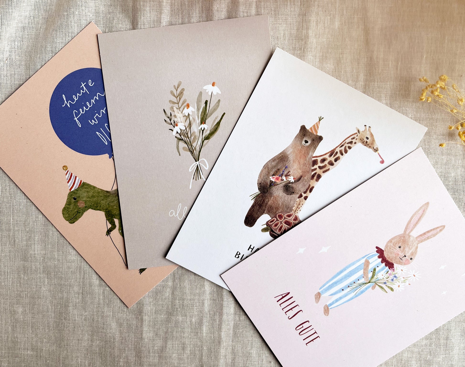 Liebevoll gestaltete Geburtstagskarten – 4er-Set auf Recyclingpapier